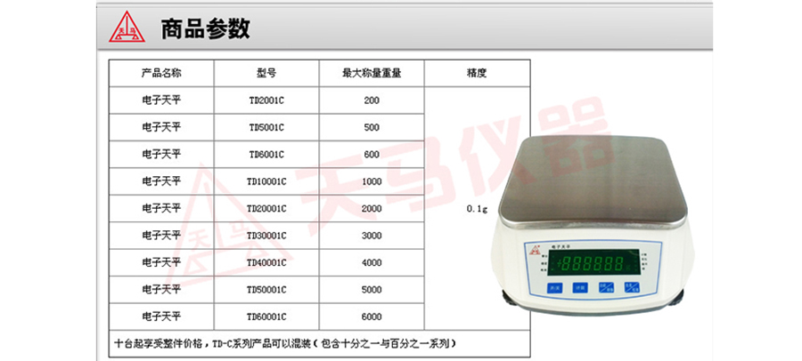 商品名称:天津天马 TD-C系列精密电子天平 TD20001C 2000g/0.1g
