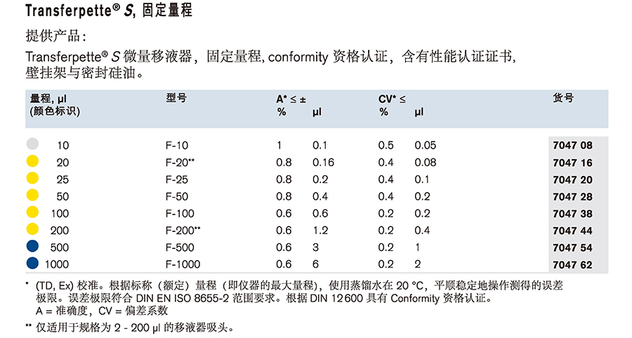 商品名称:德国普兰德 Transferpette®S微量移液器 固定量程 F-500