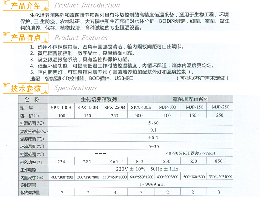 黄骅菲斯福 生化培养箱(冷藏培养箱/BOD培养箱) SPX-70BX