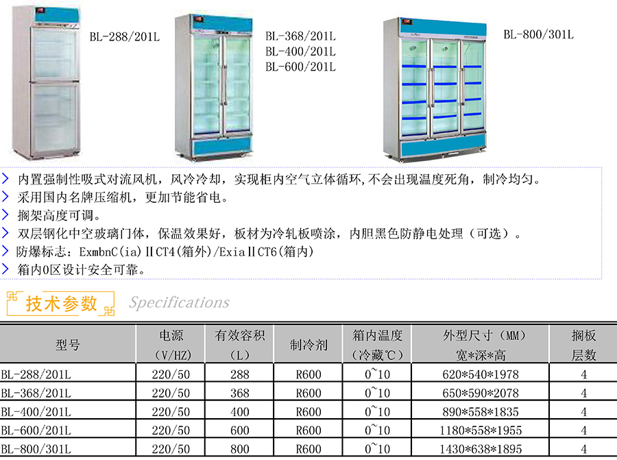 商品名称:上海钧华 防爆冷柜(冷藏) BL-400/201L