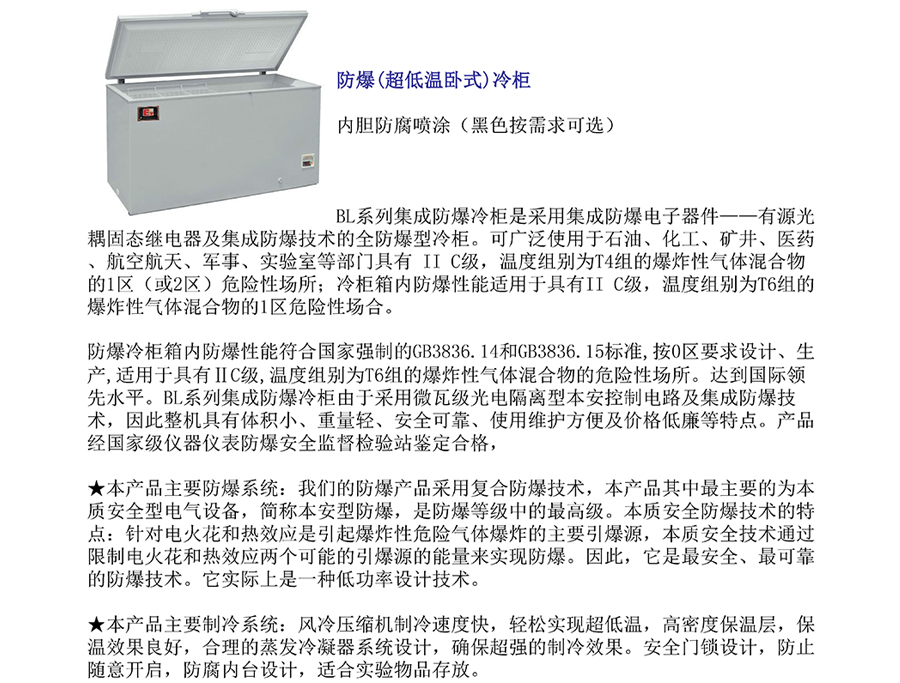 商品名称:上海钧华 防爆(超低温卧式)冷柜 BL-300/141W-D25