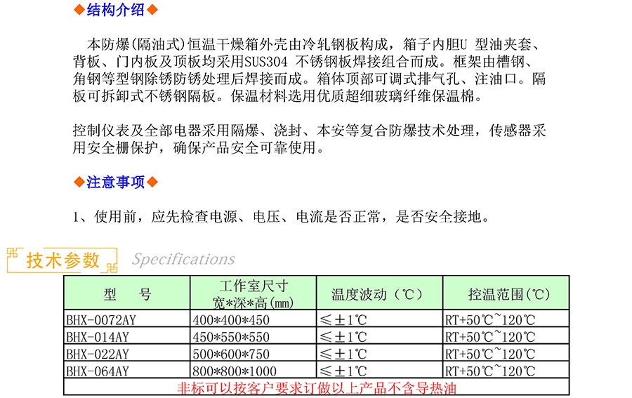 上海钧华 防爆恒温干燥箱 (隔油式) BHX-014AY