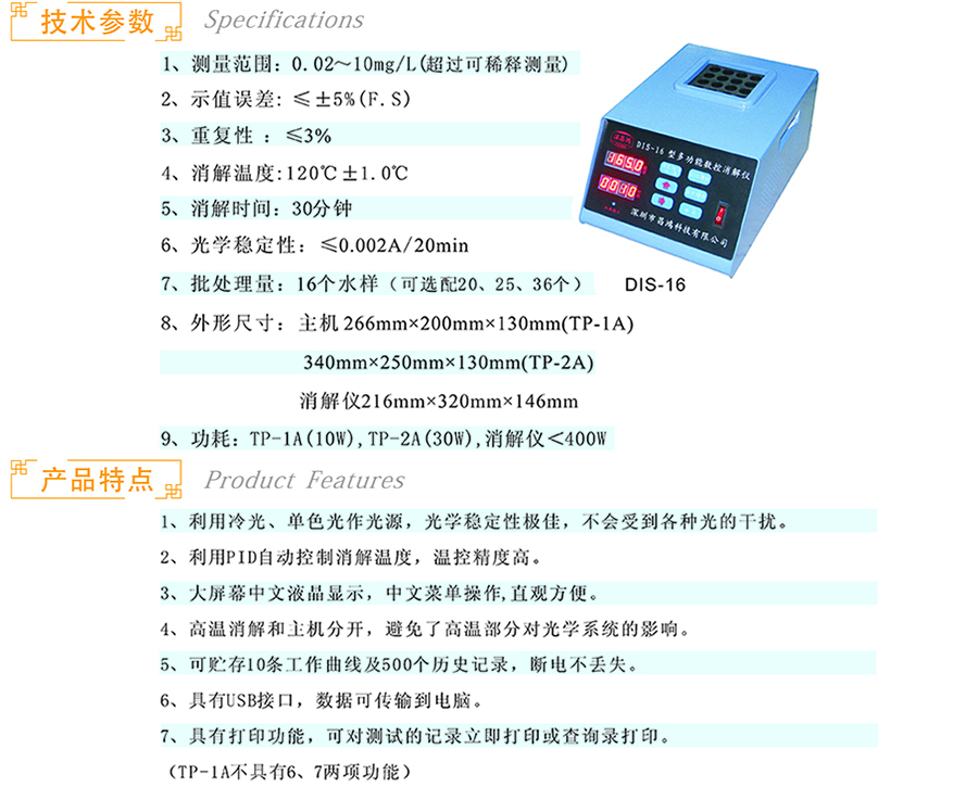 商品名称:深圳昌鸿 TP-2A型总磷测定仪