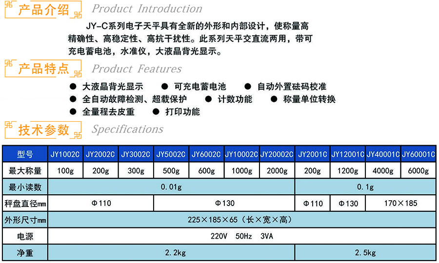商品名称:上海衡平 JY-C系列电子天平JY10002C