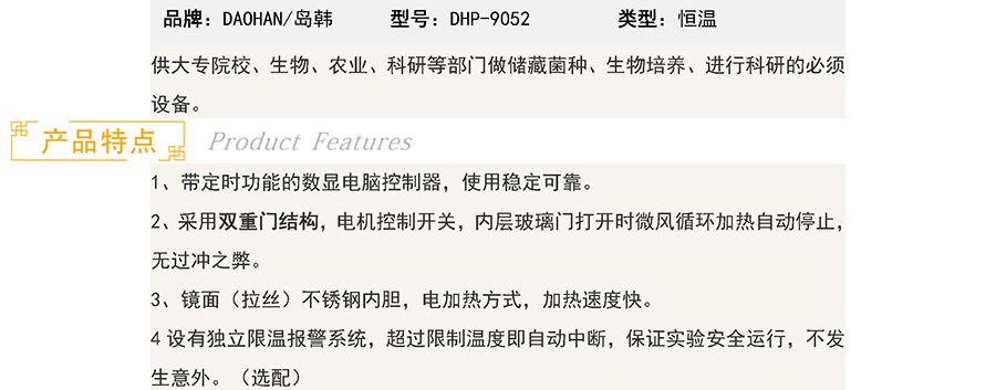 商品名称:上海岛韩 DHP系列恒温培养箱 DHP-9082