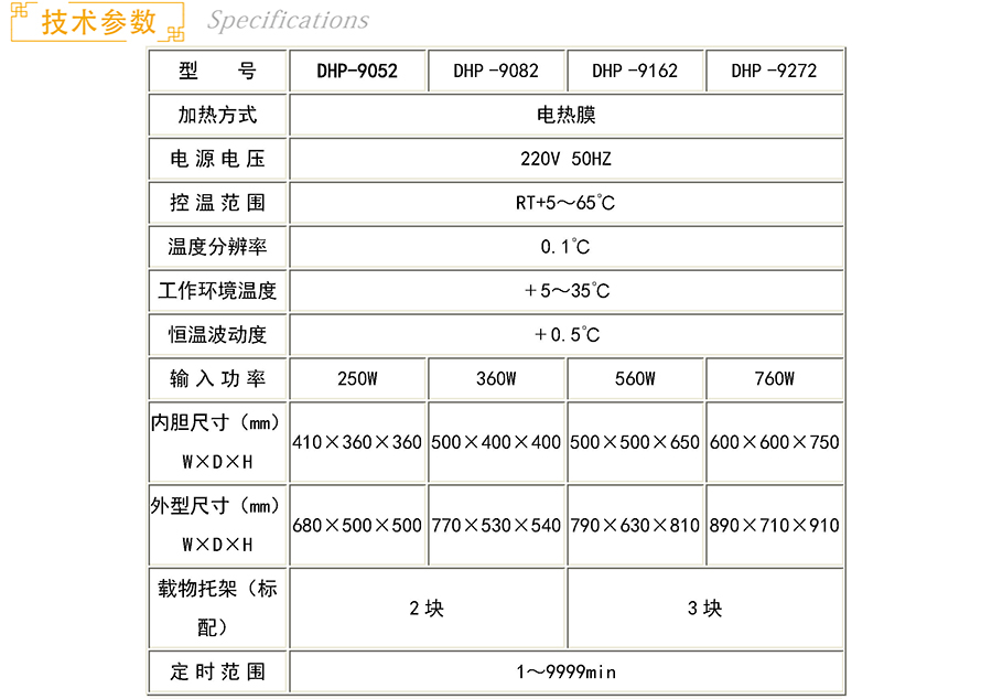 商品名称:上海岛韩 DHP系列恒温培养箱 DHP-9272