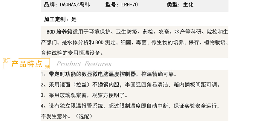 商品名称:上海岛韩 LRH系列生化培养箱 LRH-70F 无氟环保型