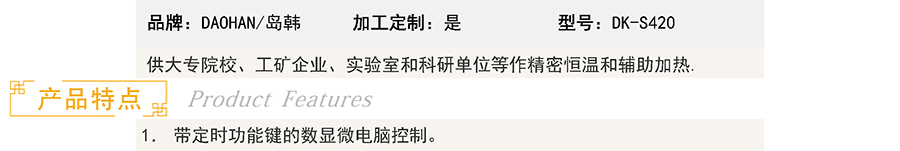 商品名称:上海岛韩 电热恒温水槽 DK-S420 商品编号:10011150 上架时间:2018/9/29 0:00:00