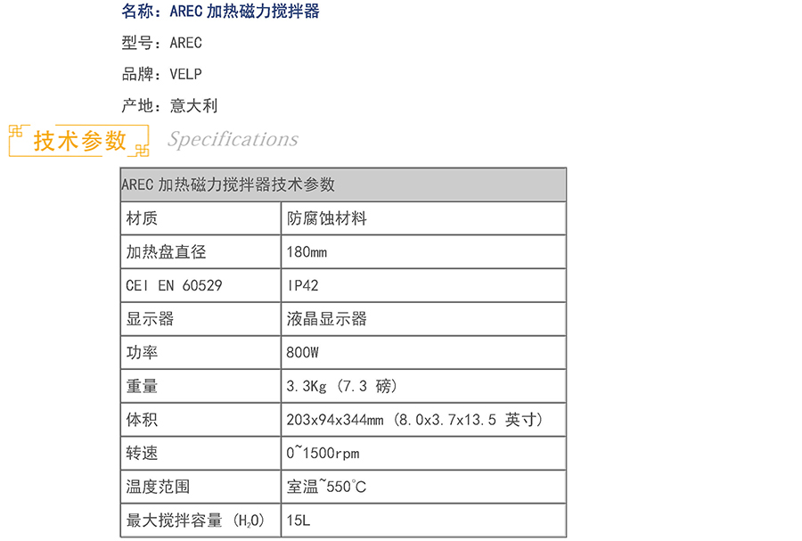商品名称:意大利VELP AREC加热磁力搅拌器 商品编号:10011310 上架时间:2018/10/15 0:00:00