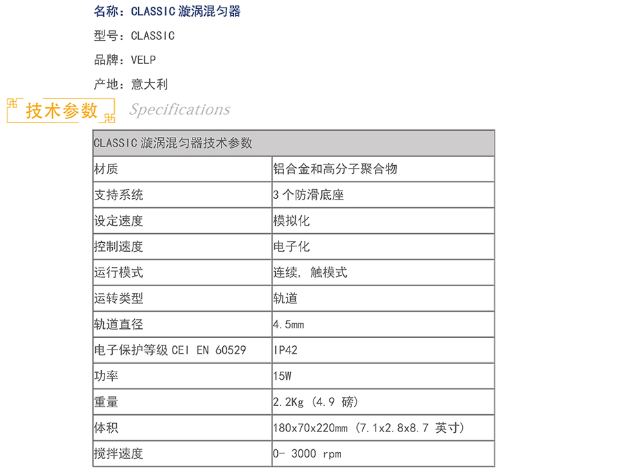 商品名称:意大利VELP CLASSIC漩涡混匀器 商品编号:10011315 上架时间:2018/10/15 0:00:00