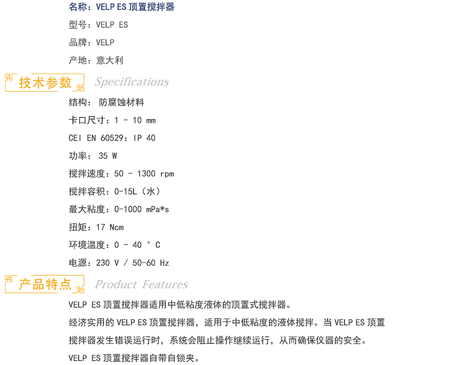 商品名称:意大利VELP ES顶置搅拌器 商品编号:10011319 上架时间:2018/10/15 0:00:00