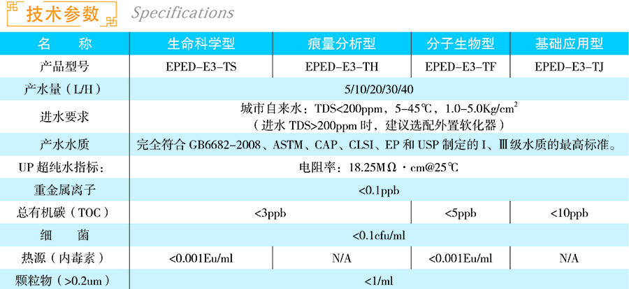 商品名称:南京易普易达 分子生物型E3系列EPED-E3-TF超纯水机 商品编号:10011366 上架时间:2018/10/16 0:00:00