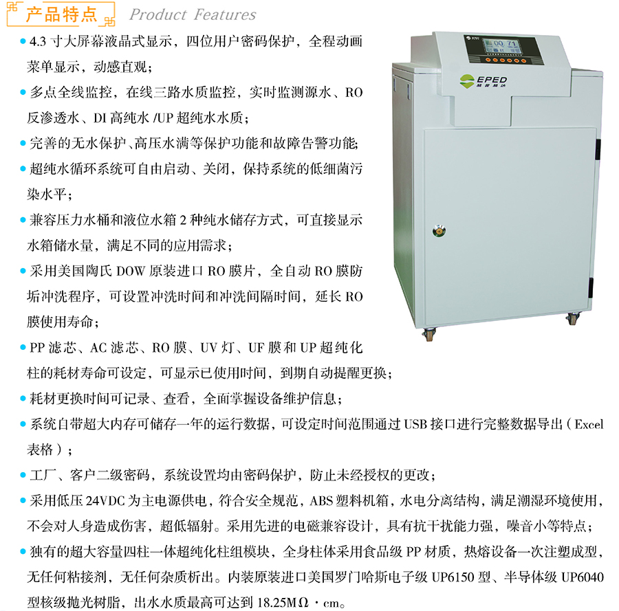 商品名称:南京易普易达 生命科学型F2系列EPED-F2-TS超纯水机 商品编号:10011368 上架时间:2018/10/16 0:00:00