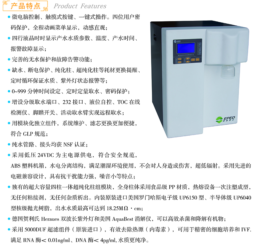 商品名称:南京易普易达 痕量分析型S2系列EPED-E3-TH超纯水机 商品编号:10011372 上架时间:2018/10/16 0:00:00