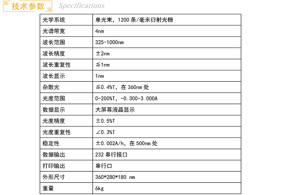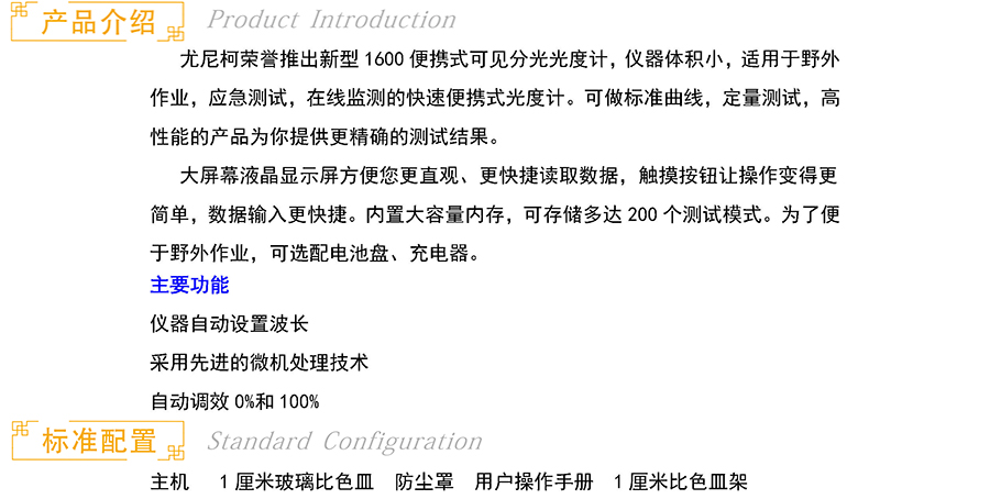 主机、1厘米玻璃比色皿、防尘罩、用户操作手册、1厘米比色皿架