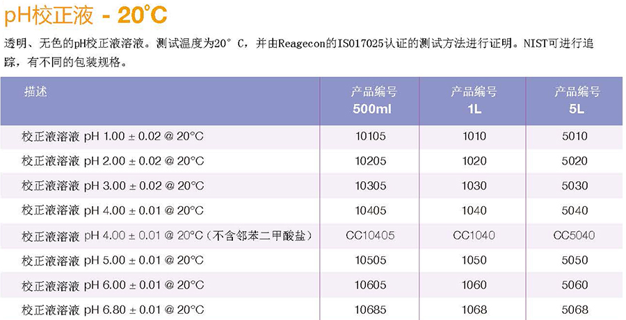 爱尔兰Reagecon pH 缓冲液标准 N.I.S.T.(12.627)@20°C