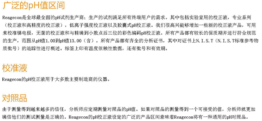 爱尔兰Reagecon pH 缓冲液标准 N.I.S.T.(12.627)@20°C