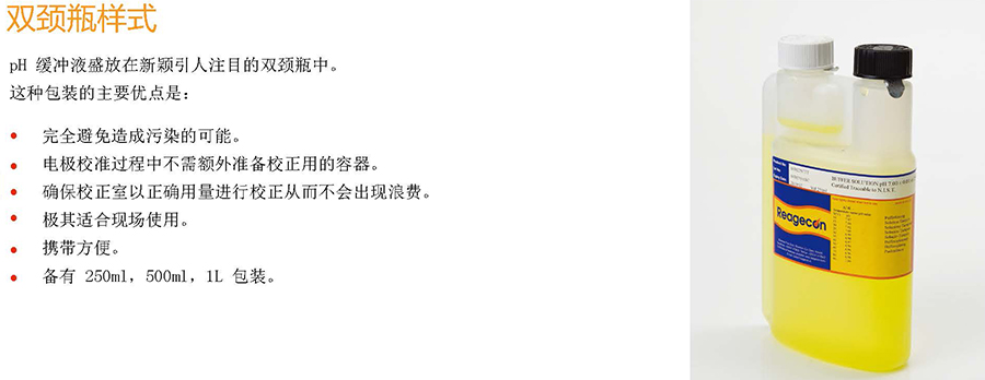 爱尔兰Reagecon PH校正液(7.00,黄@20°C)双颈瓶样式