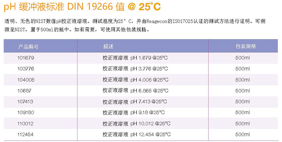 商品名称:爱尔兰Reagecon pH缓冲标准液 DIN 19266 值(10.012)@25°C