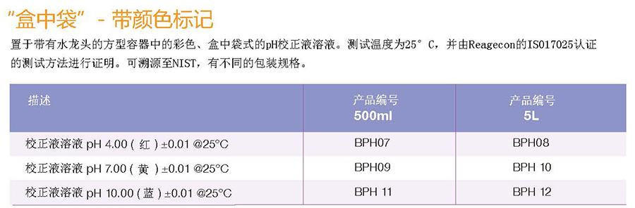 商品名称:爱尔兰Reagecon pH校正液溶液盒中袋(10.00,蓝,@25°) 500ml