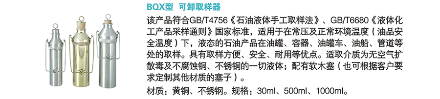 抚顺博瑞特 BQX型可卸取样器 1000ml