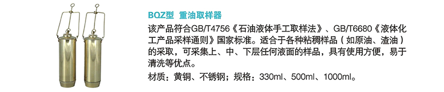 抚顺博瑞特 BQZ型重油取样器 330ml