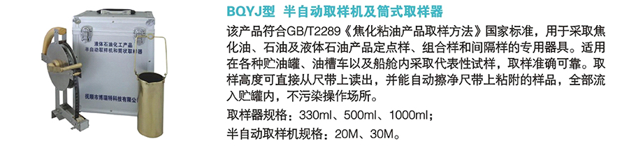 抚顺博瑞特 BQYJ型半自动取样机及筒式取样器 1000ml