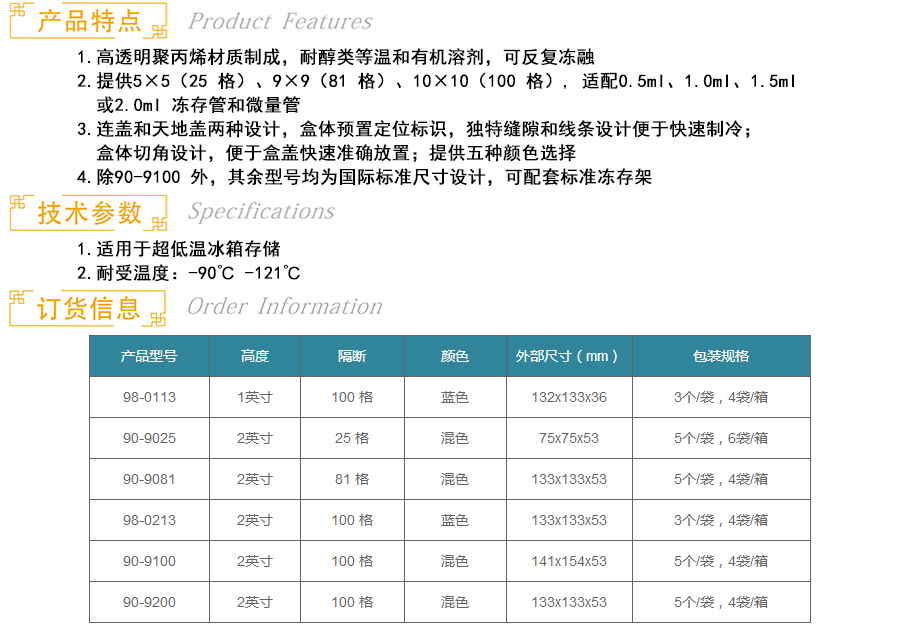济南巴罗克 PP冷冻盒 100格 2英寸高 90-9200