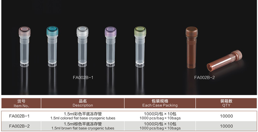 商品名称:台州方野科技 1.5ml彩色平底冻存管 FA002B-1 1000支/包*10包 商品编号:40018254 上架时间:2019/5/30 0:00:00