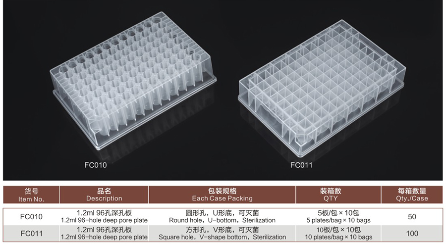 台州方野科技 1.2ml 96孔深孔板 FC010 圆形孔 U形底 可灭菌 5板/包*10包