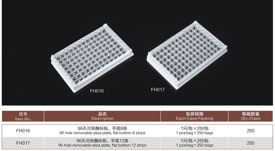 台州方野科技 FH016 96孔可拆酶标板,平底8条 1支/包*250包