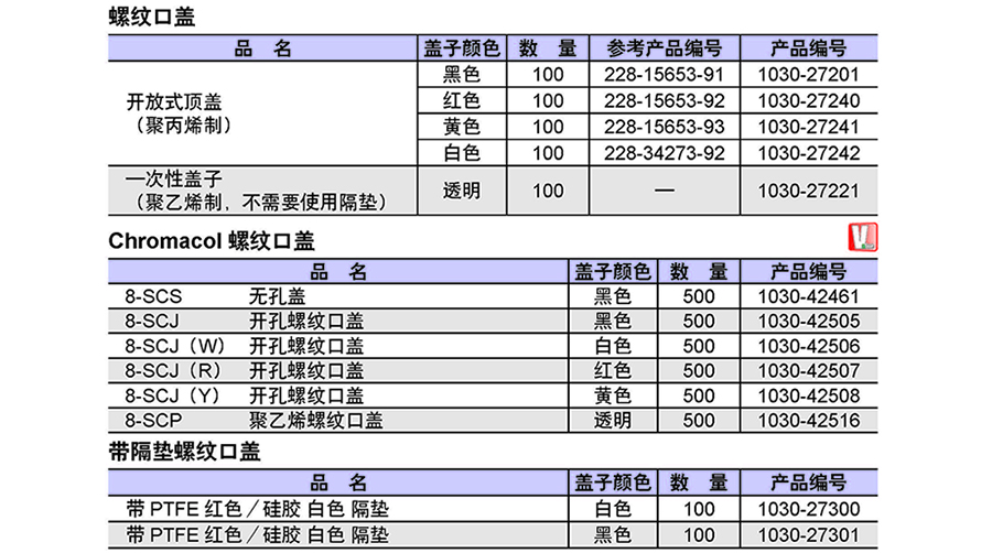 商品名称:上海岛津 12*32mm 标准口径(8-425)Chromacol螺纹口盖 8-SCS 无孔盖 黑色 1030-42461 商品编号:40019163 上架时间:2019/7/19 0:00:00