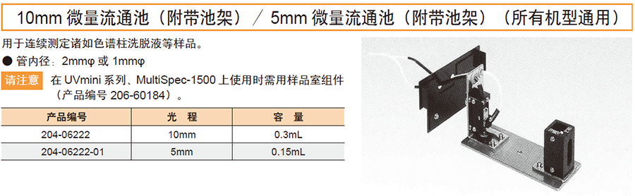 上海岛津 紫外可见分光光度计配件 比色皿组件 10mm 微量流通池(附带池架)/5mm 微量流通池(附带池架) 所有机型通用 光程5mm 容量0.15ml 204-06222-01