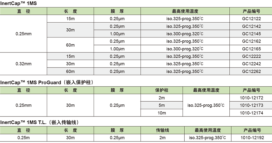上海岛津 InertCapTM 1MS气相毛细管柱 直径:0.32mm,长度:60m,膜厚:0.25μm,产品编号:GC12262