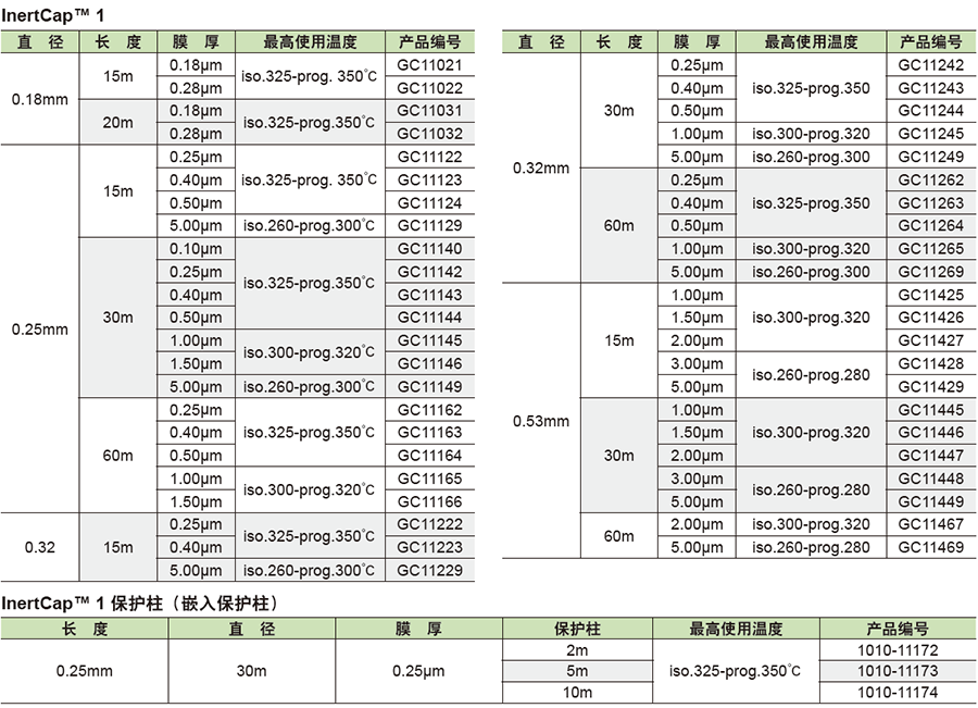 上海岛津 InertCap™ 1气相毛细管柱 直径:0.32mm,长度:60m,膜厚:0.50μm,产品编号:GC11264
