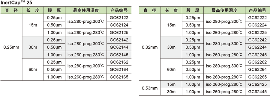 上海岛津 InertCap™ 25气相毛细管柱 直径:0.25mm,长度:15m,膜厚:0.25μm,产品编号:GC62122