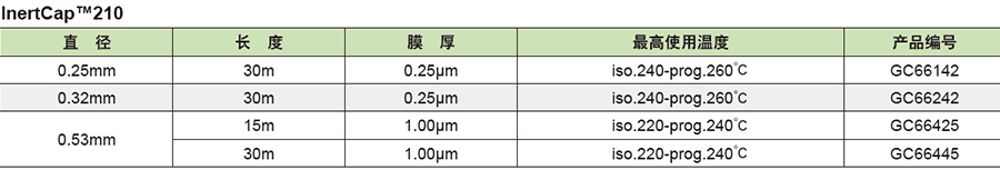 上海岛津 InertCap™ 210气相毛细管柱 直径:0.53mm,长度:15m,膜厚:1.00μm,产品编号:GC66425
