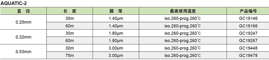 上海岛津 AQUATIC-2气相毛细管柱 直径:0.25mm,长度:30m,膜厚:1.40μm,产品编号:GC19146