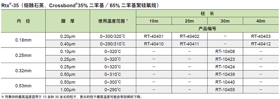 上海岛津 Rtx®-35 气相色谱柱 内径:0.18mm,膜厚:0.20μm,柱长:20m,产品编号:RT-40402