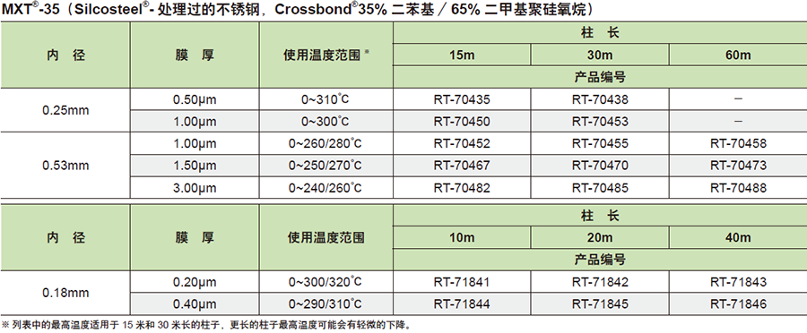 上海岛津 MXT®-35 气相色谱柱 内径:0.18mm,膜厚:0.20μm,柱长:10m,产品编号:RT-71841