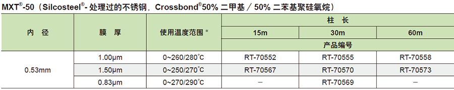 上海岛津 MXT®-50 气相色谱柱 内径:0.53mm,膜厚:1.50μm,柱长:30m,产品编号:RT-70570