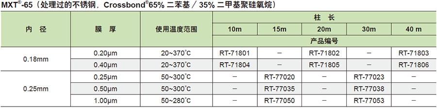 上海岛津 MXT®-65 气相色谱柱 内径:0.25mm,膜厚:0.25μm,柱长:15m,产品编号:RT-77020
