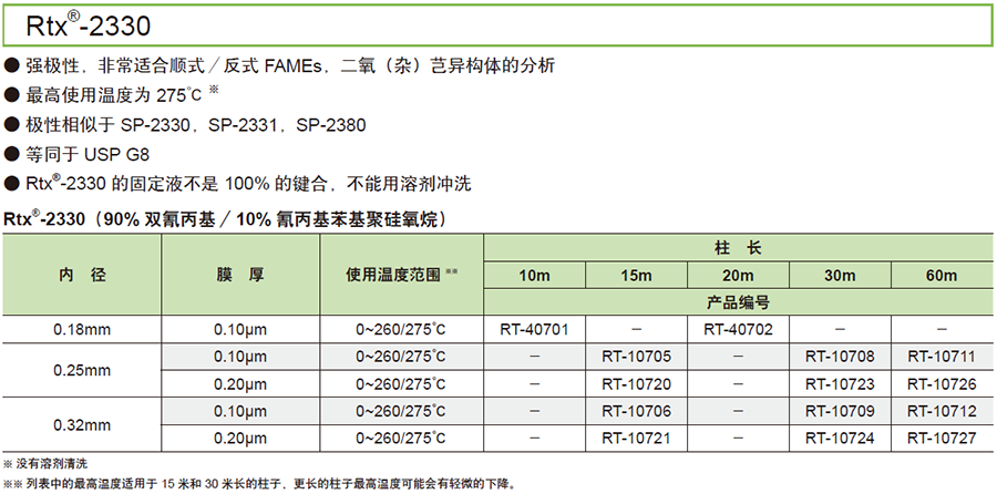 上海岛津 Rtx®-2330 气相色谱柱 内径:0.32mm,膜厚:0.20μm,柱长:60m,产品编号:RT-10727
