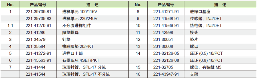 商品名称:上海岛津 GC-17A Ver2,3仪器常用备件 分流/不分流进样口 玻璃衬管,SPL-17 不分流 产品编号:221-41544 商品编号:40021408 上架时间:2019/7/19 0:00:00