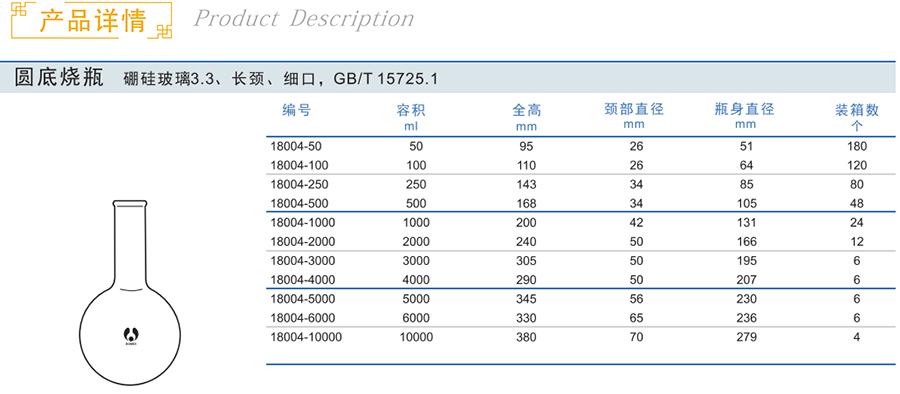 商品名称:博美玻璃 圆球瓶 圆底烧瓶 硼硅玻璃 长颈细口 10000ml