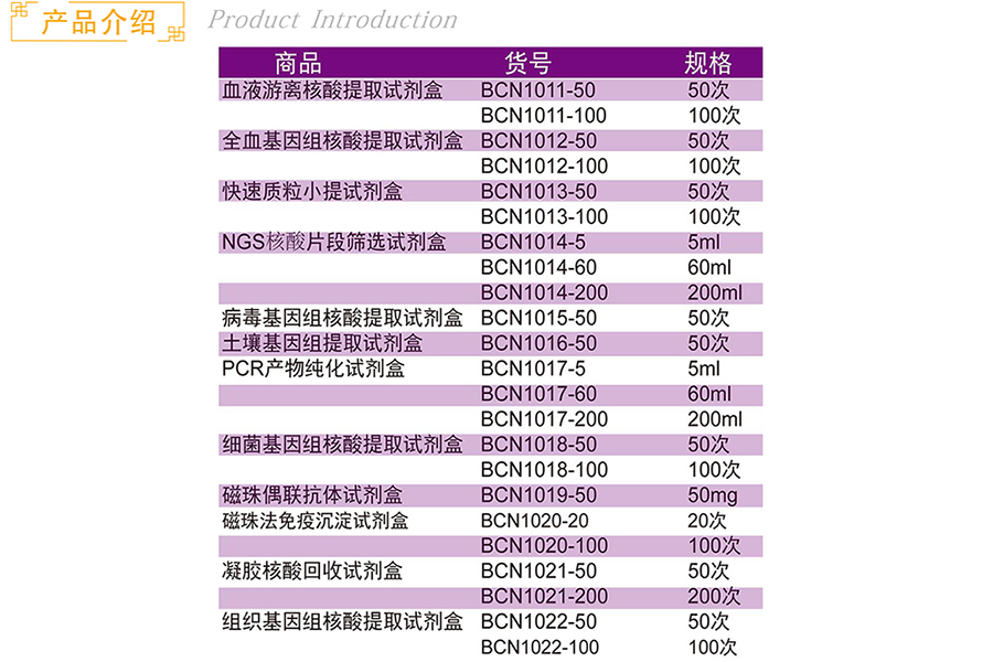 商品名称:无锡百运科技 PCR产物纯化试剂盒(磁珠法) 200ml 商品编号:40022799 上架时间:2019/8/1 0:00:00