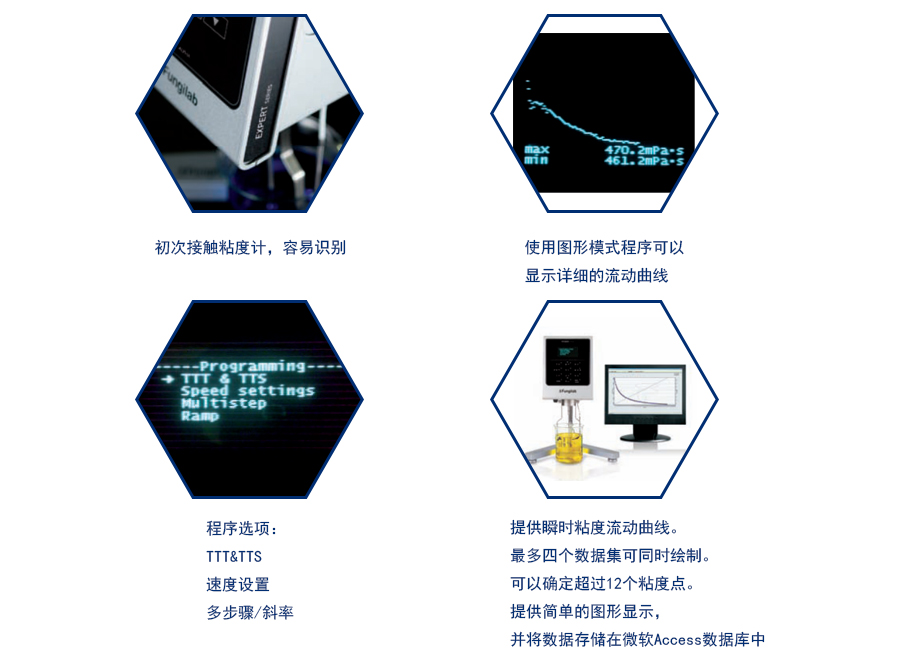 粘度计主机,标准3脚水平支架,标准转子,转子保护帽,粘度计支架,PT100探头,电源线,上传数据软件,USB传输线,便携箱,校准证书,操作手册,Fungilab数据软件, 注意:所有配件(包含粘度计支架)均放置在便携箱中。