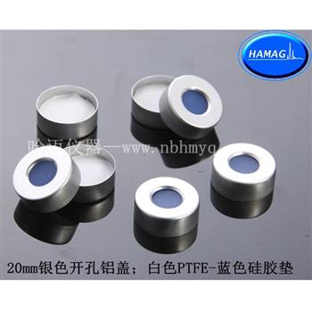宁波哈迈 预组装银色磁性顶空盖 中心孔8mm,蓝色PTFE/白色硅