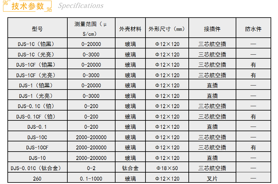 商品名称:上海雷磁 DJS-0.1C型电导电极(铂) 0.05-200μS/cm