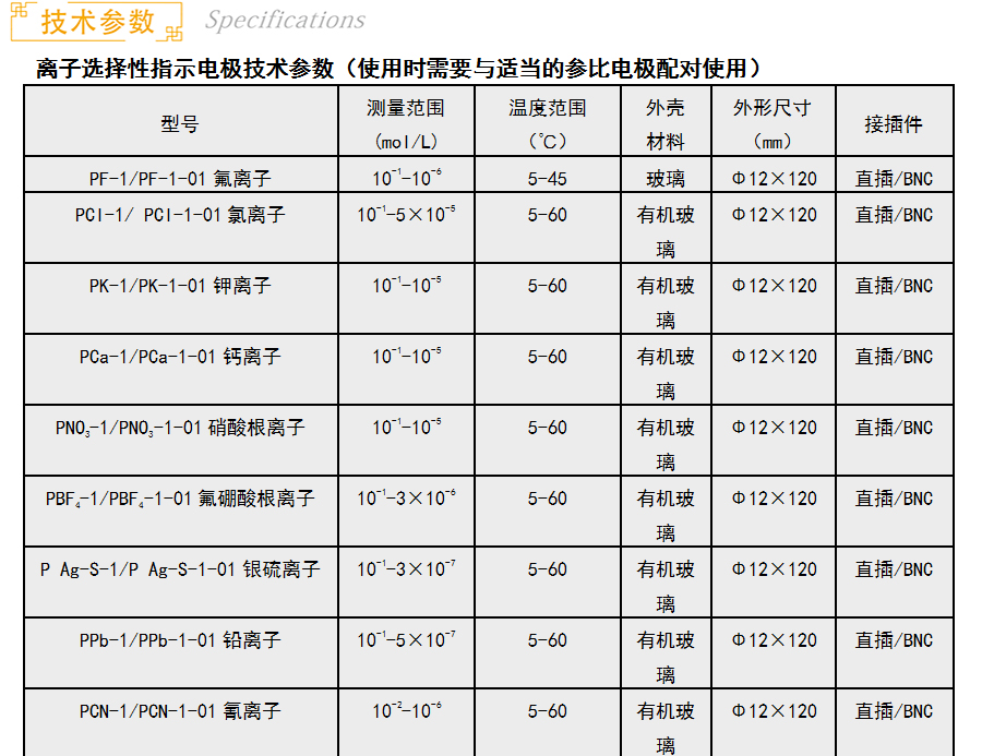 商品名称:上海雷磁 PI-1-01型碘离子电极 BNC(Q9型)